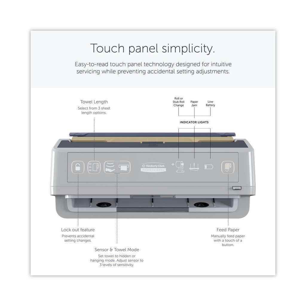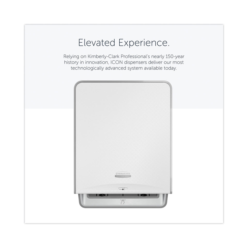 The Kimberly-Clark Professional ICON™ automatic paper towel dispensing system features first-of-a-kind versatility and effortlessly enhances the look of the restroom with one of an exclusive line of six designer faceplates. Inspired by human-centered design, the ICON™ dispenser features intuitive control panel, front-load battery bay and dampened hinge technology. Using direct-drive technology the ICON™ dispenser has a patented dual sensor technology that delivers worry-free, touchless 99.99% jam-free dispensing and is compatible with your choice of Kleenex or Scott roll towels.