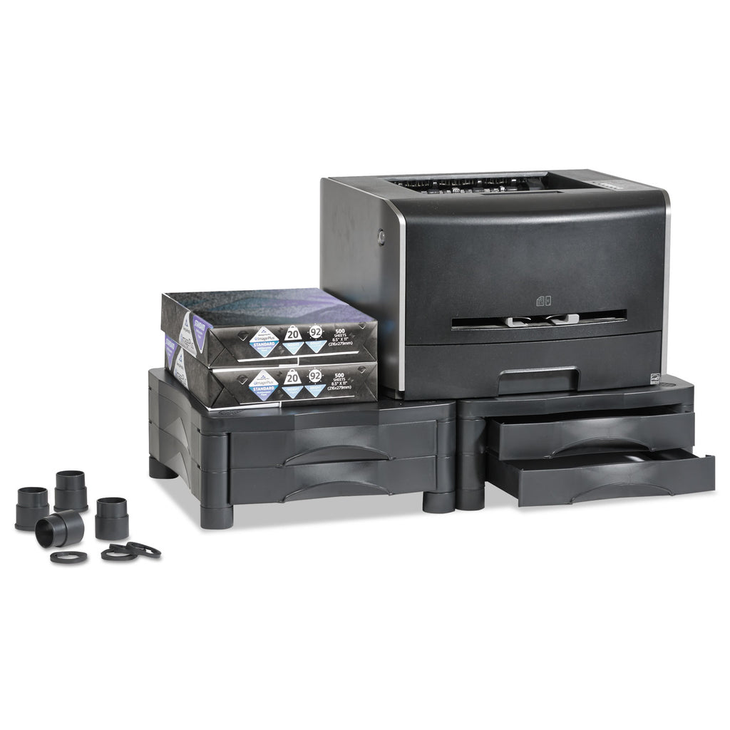 Elevating your monitor to a more ergonomically correct eye level, increasing comfort and reducing neck and shoulder strain. Functional height adjustment from 2” to 4” with easy to attach insert tubes. Cable management system helps organize cables and cords. Non-skid foot rings ensure stability.