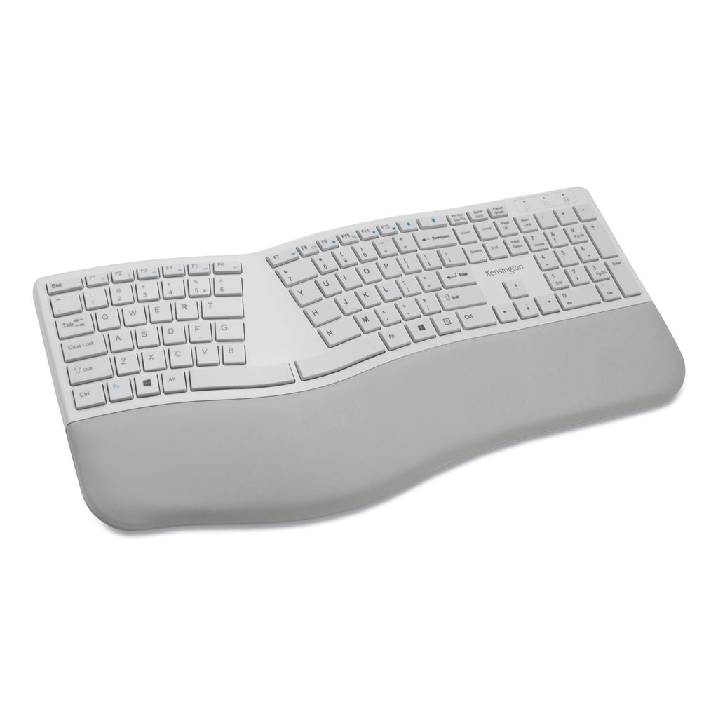 Ergonomist-approved design positions your hand for improved comfort. Split and sloped keyboard with adjustable reverse tilt positions hands, wrists, and forearms for comfort and neutral alignment. Built-in wrist rest supports, cushions, and cradles the wrists. Dual wireless with 128-bit AES encryption security delivers the flexibility of 2.4 GHz and Bluetooth 4.0 LE, with government-grade encryption. Quiet keys means typing is smooth, easy, and non-disruptive. Spill-proof keys make cleanup fast and easy. With a replaceable receiver, if your receiver is ever lost or damaged, simply purchase a new one, pair it with your mouse, and you're all set. Three-mode power-saving switch allows you to toggle between 2.4GHz, Bluetooth, and Off for best battery life. Caps Lock, Numbers Lock, Scroll Lock, and F-Keys are popular features that make typing and navigating easier and more efficient.