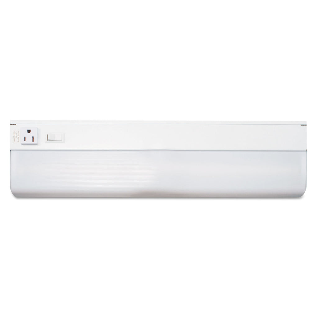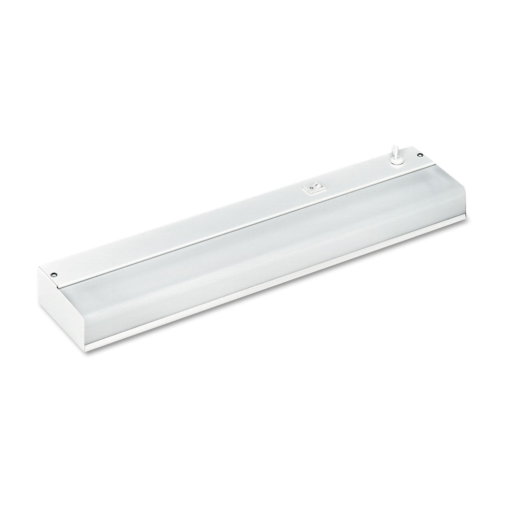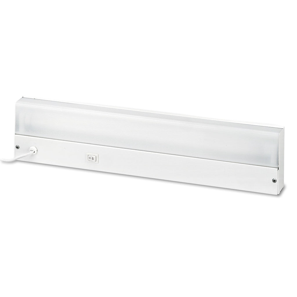 The Ledu Under-Cabinet Light is an 18.25" long fluorescent light that is perfect for providing light in cabinets, shelves, or closets. Easy to use with a simple on/off switch. Has an integrated power outlet on the light for plugging in other devices. This light comes with a 60" power cord to reach or feed to wall outlets from further away. The white housing and 1.75” depth make this light a camouflaged space-saving solution. Energy-efficient under cabinet light uses a 15W bulb. Installation hardware included.