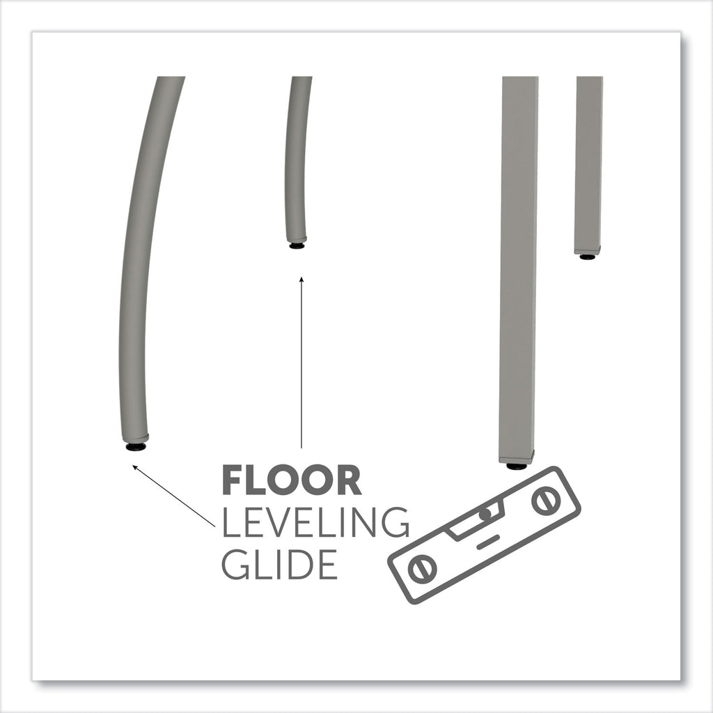 Scratch- and stain-resistant woodgrain laminate with durable edge and strong powder coated steel frame. Adjustable leveling glides for stability. Quick and easy assembly in minutes with no tools required. Configure multiple desks to perfectly fit your space. Includes metal modesty panels. Pedestals fit under desk.