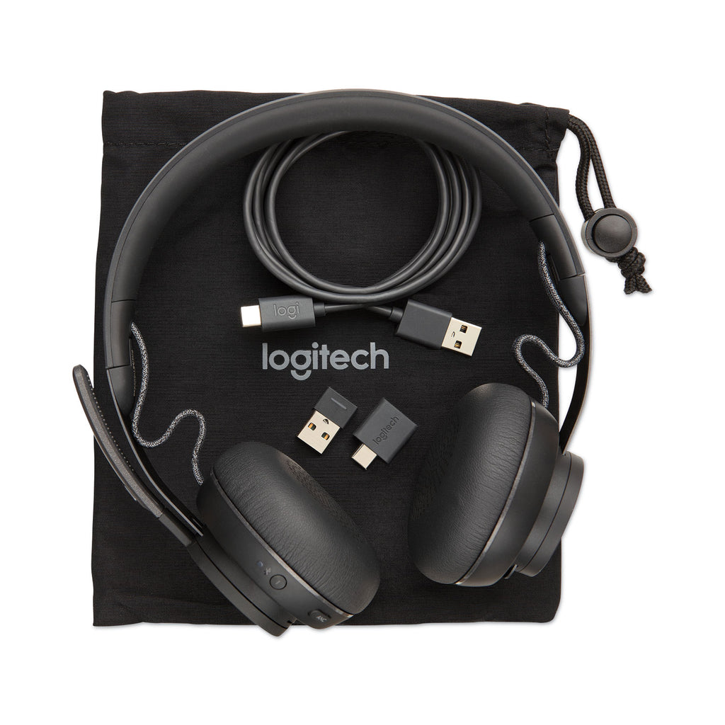 Open workspaces are great for collaboration, but not so great when the noise around you makes it hard to concentrate. Active noise cancellation substantially reduces unwanted ambient sound, so you can get focused and stay focused. Great for music and talking with immersive sound for listening to music and a noise-canceling microphone that ensures that your voice is heard on the other end of a call—not the noise around you. Intuitive and simple controls to adjust volume, play and pause music, start and end calls, flip-to-mute the microphone, power on/off, active noise cancellation, and Bluetooth® pairing. Also supports wireless Qi charging. Designed to be comfortable for use all day, every day. The silicone-padded headband is lightweight and provides just the right clamping force for a great fit. Soft leatherette ear pads are cushiony and breathable, so your ears don't get hot. Connect to your computer and smartphone simultaneously and seamlessly switch between connected devices at will. The 30m (100 ft) wireless range provides freedom to roam while staying connected. Connect up to six Logitech unifying wireless peripherals through a single USB Unifying + Audio receiver. Provides a reliable connection up to 10 m away from mice/keyboards, and up to 30 m away from the headset.