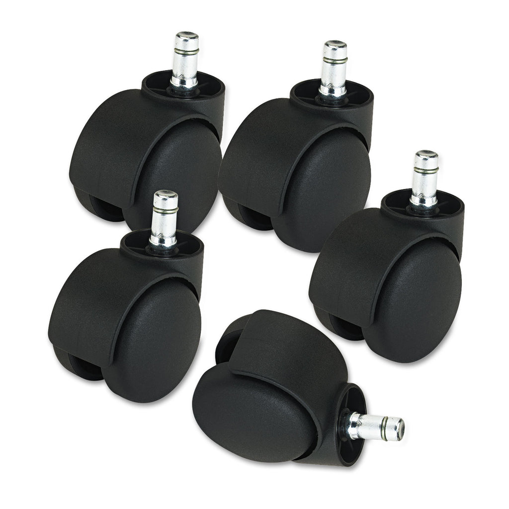 - Includes 5 wheels and 10 stem fasteners; 5 each 7/16" x 7/8" and 5 each 3/8" x 7/8" fits most metal bases.