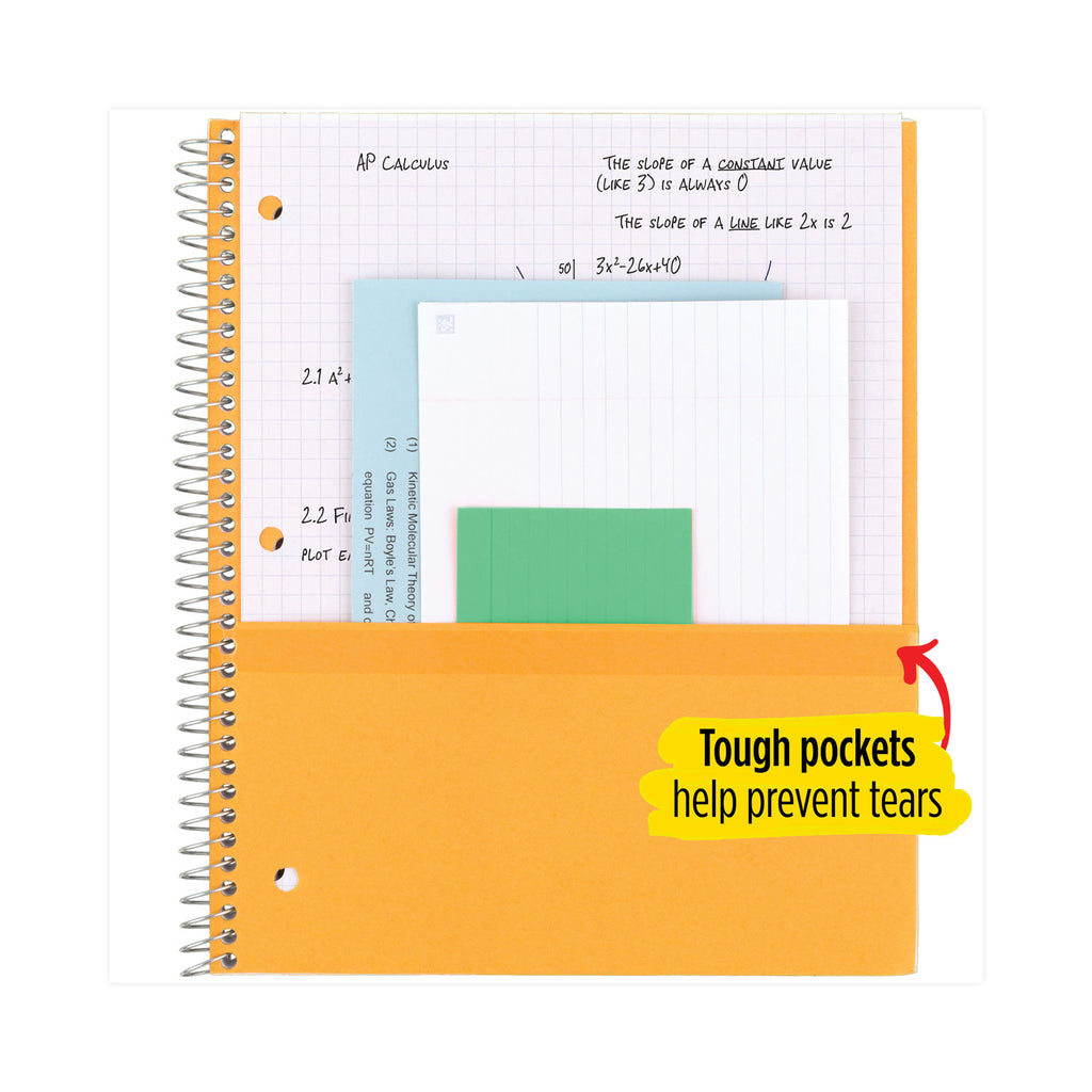 Last all year. Guaranteed! Durable, water-resistant poly covers protect your notes all year. Reinforced, tear-resistant divider pockets keep your loose sheets together. Spiral Lock® wire binding prevents coil snag, and high-quality paper provides excellent ink-bleed resistance. Easily inserts into any three-ring binder (sold separately). Further enhance your notetaking with the Five Star® Study App that allows you to scan, study and organize your notes. Create instant flashcards and sync your notes to Google Drive to access them anywhere from any device.