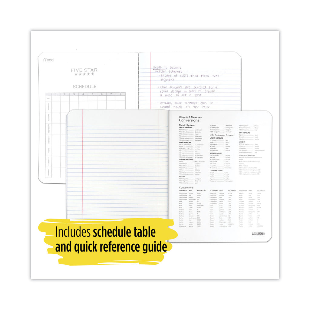 A Five Star® Composition Book is perfect for permanent notetaking. Use it in class and at home for labs, take-home assignments, and more. These composition books are made to be durable so that you don’t have to worry about binding coming apart or missing pages that have fallen out. Pages are sewn in so they stay in place securely, all year long. The composition book front and back covers are plastic to resist everyday wear and tear. 100 sheets. Use with Five Star® Study App to scan, study and organize your notes. Create instant flashcards and sync your notes to Google Drive to access them anywhere from any device.