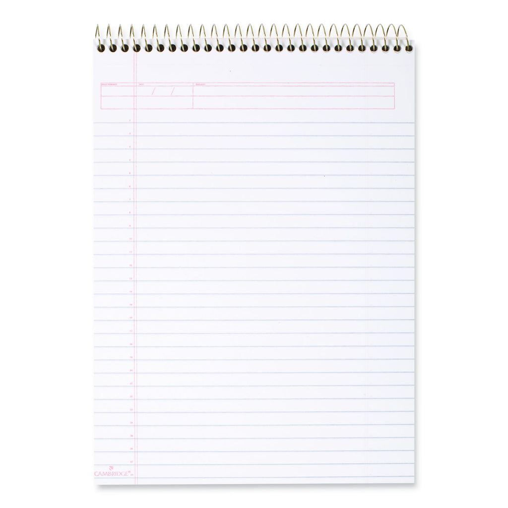 Heavyweight 20-lb paper. Perforated for clean tear-out. Extra-stiff backing. Spiral binding. 8.5" x 11" page size. Contains 70 double-sided sheets for a total of 140 pages.