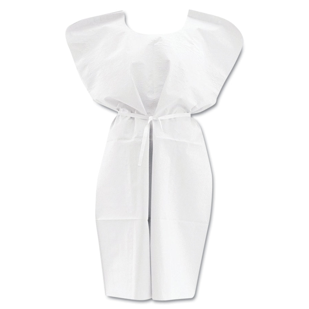 3-ply tissue/poly/tissue construction. Attached ties secure gown. Can be worn with opening in front or back.