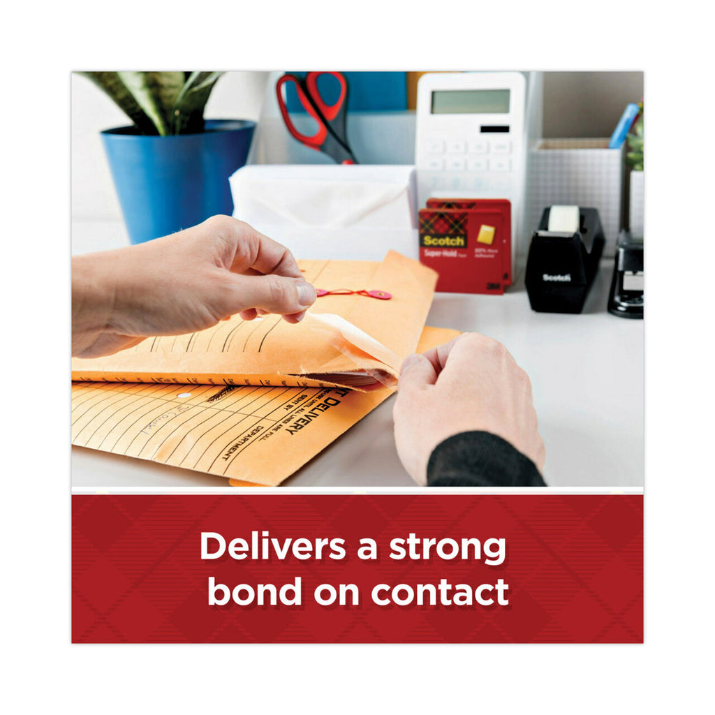 From sealing envelopes to making quick fixes on the fly, rely on the powerful bond of Scotch® Super Hold Tape. Designed with 50% more adhesive, this innovative tape offers a stronger bond than our standard transparent tape (Versus Scotch® Cat. 157 Transparent Tape). The thicker backing delivers outstanding durability when a secure, lasting hold is essential. Virtually crystal clear, this tape holds strong without standing out–perfect for repairs, mounting, crafts and more. The convenient dispenser fits comfortably in your hand and lets you unroll and cut your desired amount with ease. Whether you're concealing confidential documents, sealing a small care package, trust what matters to you to the superior adhesion of Scotch® Super Hold Tape.