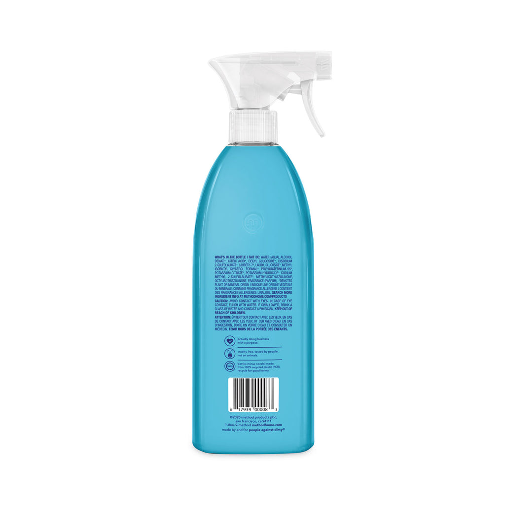 This bleach-free formula made with plant-based cleaners will help you clean soap scum, mold, mildew and stains. Aim directly at bathroom surface, then spray. Wait a couple minutes while the product does its thing. Wipe and rinse. Suitable for most hard, non-porous surfaces. Use on showers, tiles, tubs, chrome and fixtures. Leaves a fresh minty scent that gets a little boost from notes of bergamot, citron and lime leaf.