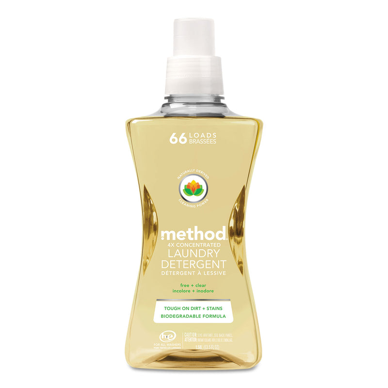 Strong, 4X concentrated detergent fights tough dirt and stains with every wash, while keeping colors bright and whites at their whitest. The naturally derived, plant-based formula is hypoallergenic and provides a powerful clean. One capful of our concentrated formula is all you need for a big load in any washer. Convenient transparent bottle with ergonomic design for easy use. Never tested on animals.
