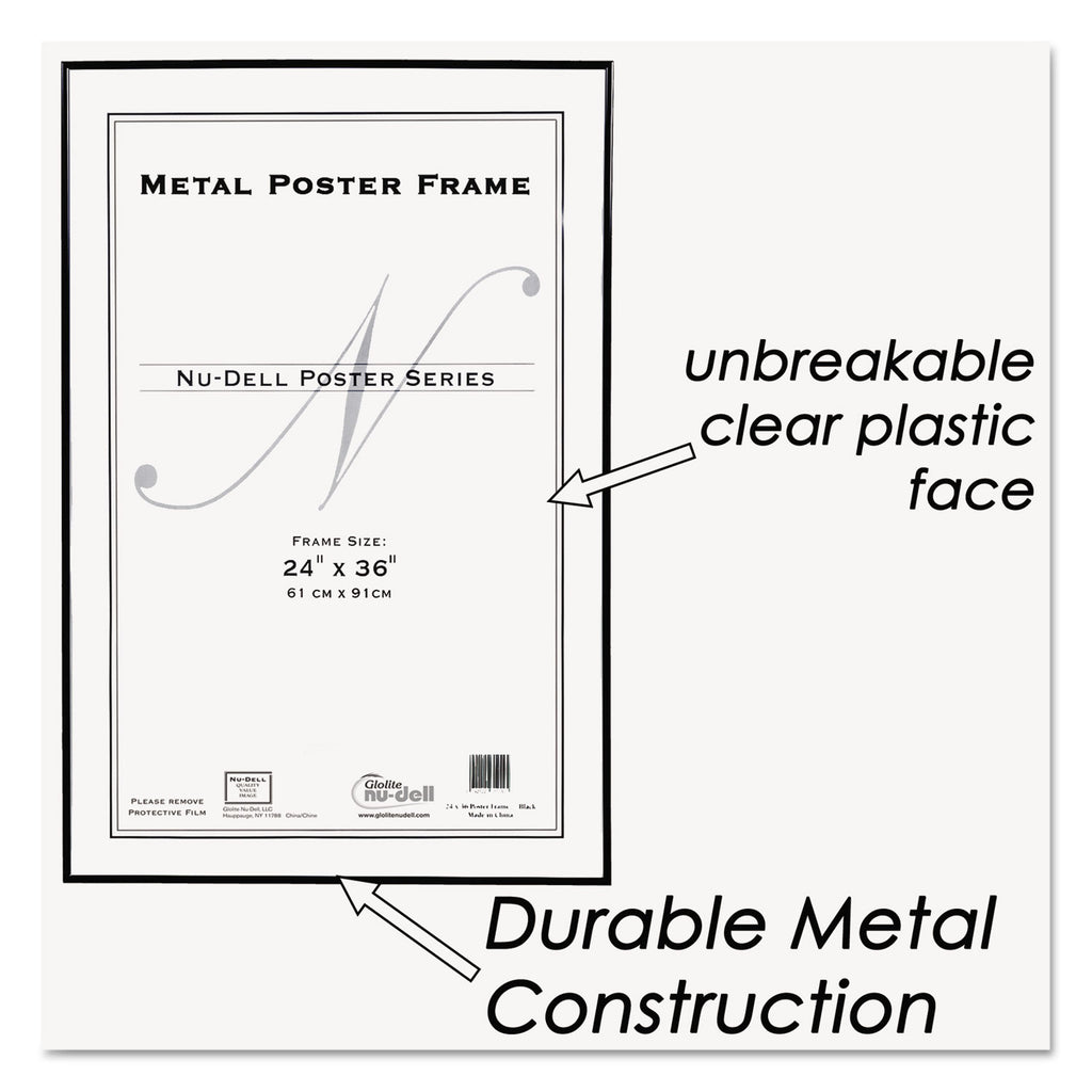 This frame is a great way to display your favorite poster or print. 3/4" metal frame has unbreakable protective plastic face. With back clips for easy vertical or horizontal wall mount.