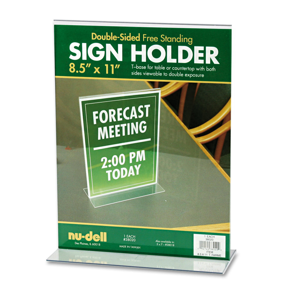 Sign, photo or certificate slides in easily. Crystal clear choice in sign display.