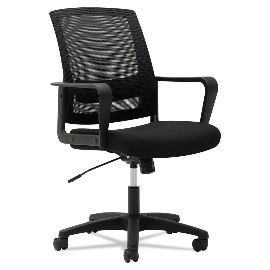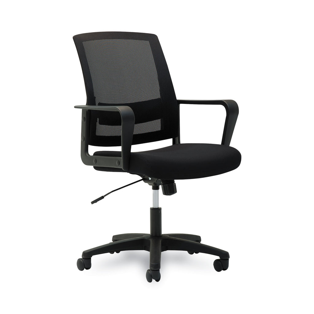 This mesh mid-back chair features an adjustable lumbar support for superior comfort. Controls are easily accessible and intuitive, featuring swivel tilt, tilt tension and tilt lock. 360 degree swivel allows easy movement in any direction. Fixed arms provide added comfort.