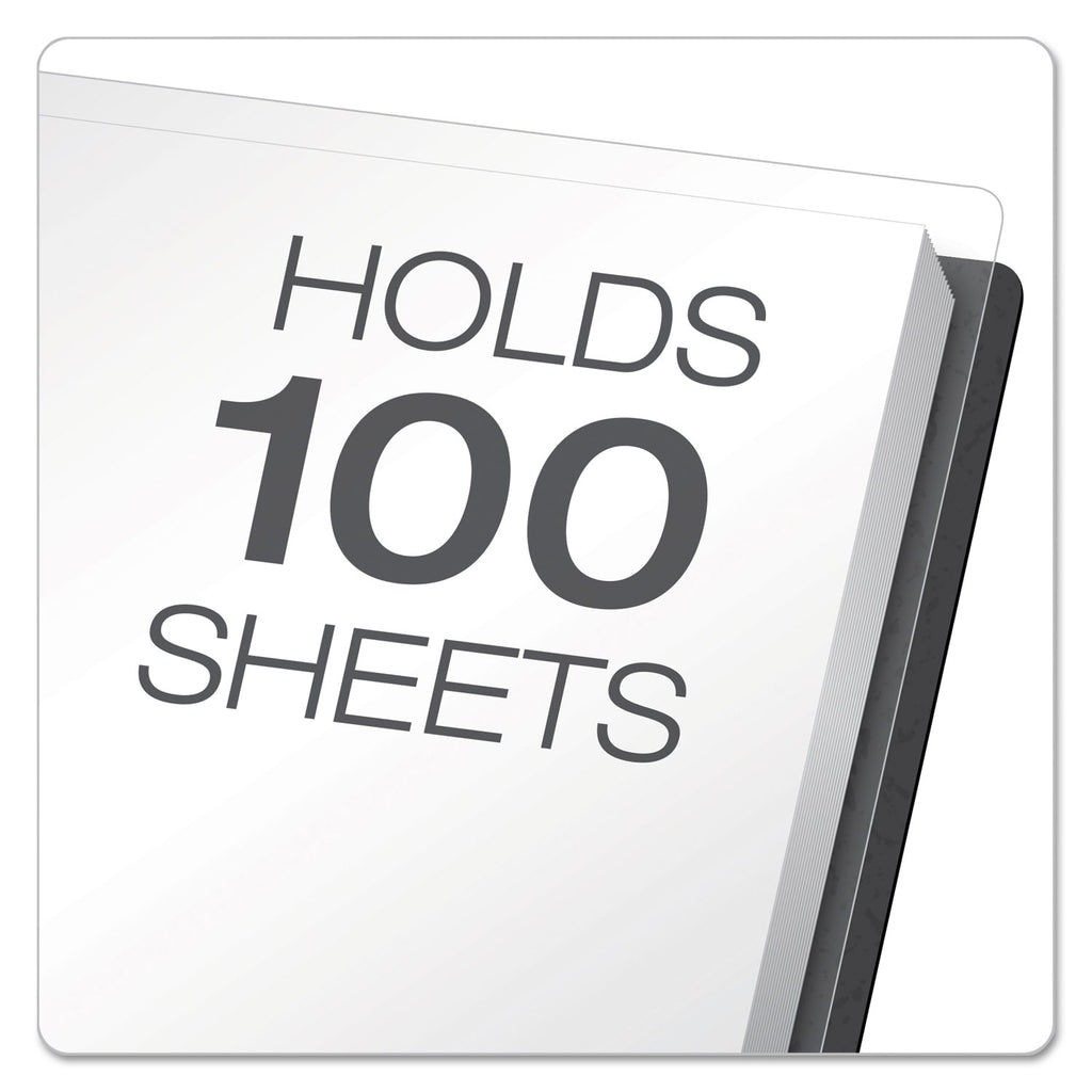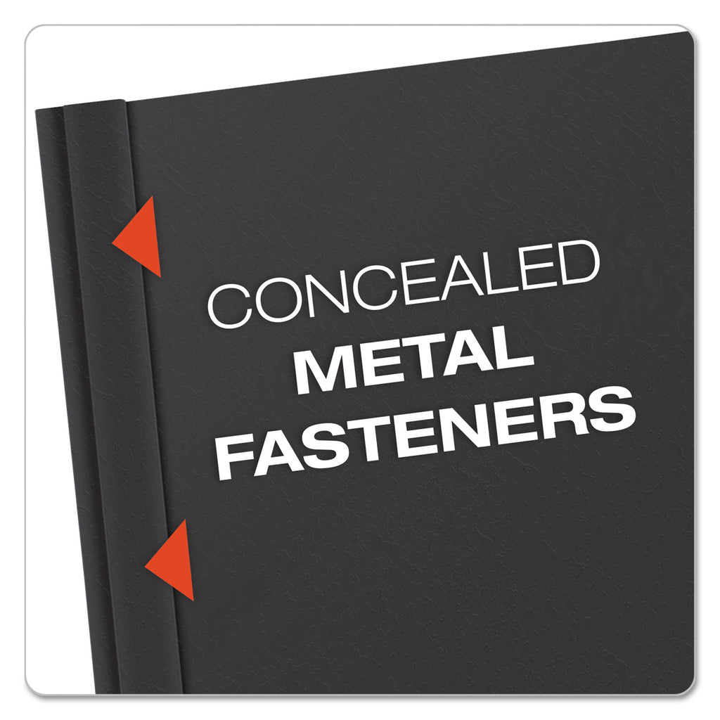 Clear view draws the reader in. First page can include report name and customized graphics. Standard-grade leatherette embossed back cover.
