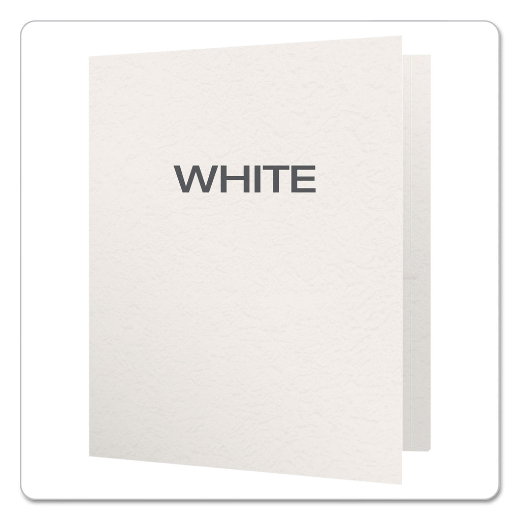 Report portfolios let you keep loose papers with fastened report. Leatherette-grained stock for a rich feel. Business card slot on inside front pocket. Holds up to 135 sheets of paper.