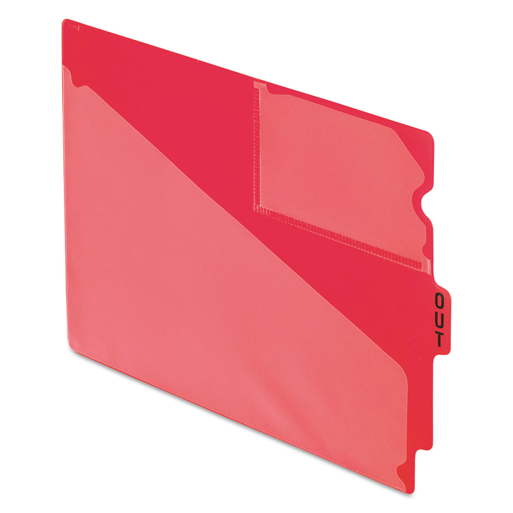 Preprinted "OUT" center end tabs make it very easy to see which files are out. Each out guide has one transparent diagonal-cut pocket and a 3 x 5 index card pocket. Durable poly is wear-, tear- and moisture-resistant.