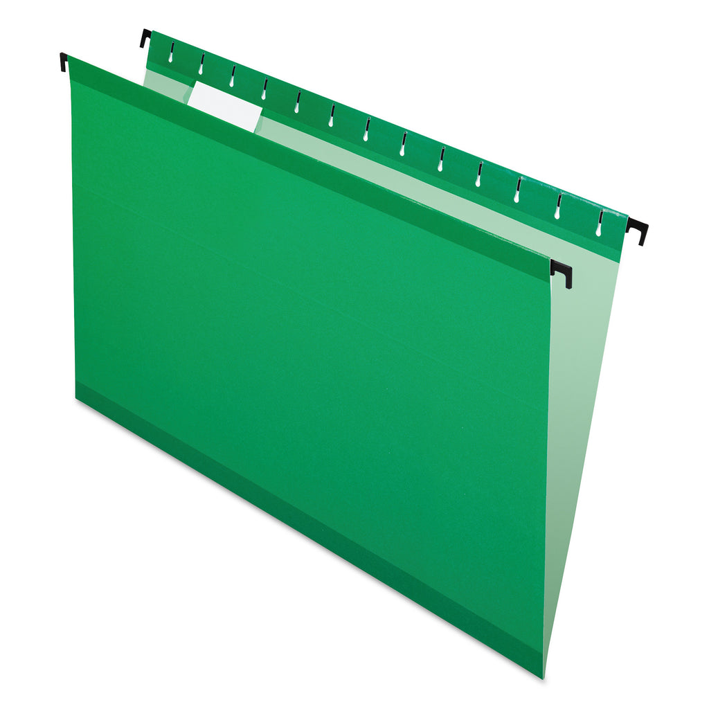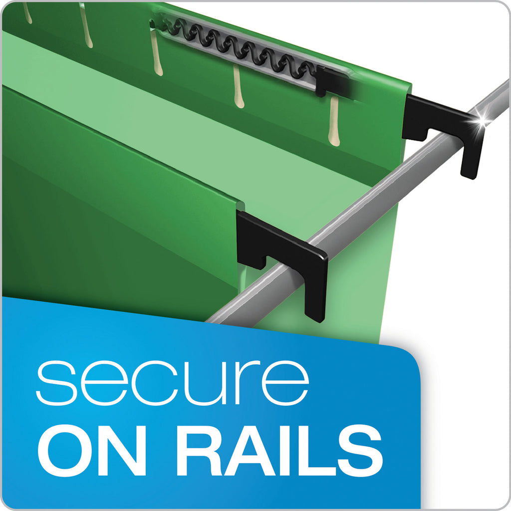 Look no further for one of the smartest, most innovative hanging folders around. Features SureHook™ technology with revolutionary built-in tension springs. Rods bend less while folders stay on rails and slide with ease. Rods and hooks are stronger and sturdier. Folders work with existing systems. Patented polylaminate reinforced tops and bottoms provide strength. Lighter interior colors help prevent misfiles. Includes tabs and inserts.