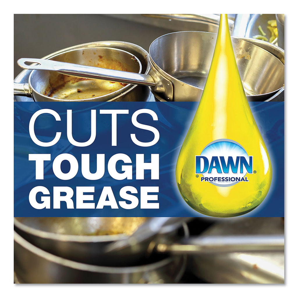 Dawn Professional Manual Pot and Pan Detergent is a highly concentrated liquid dishwashing soap that has the grease-fighting power of Dawn and is specifically formulated for tough jobs at your business. This liquid dish soap is specially formulated to help remove greasy food soils from pots, pans and utensils. Dawn dish detergent can work as an all-purpose cleaner for a variety of task areas, including three-compartment sinks (wash sink), countertops, dining areas, cooler doors, windows (outside and inside), portable equipment, trash receptacles, coffeemakers, drive-thru menu boards, and tile walls.