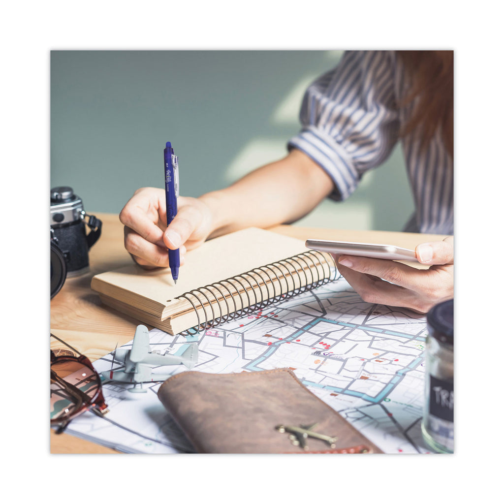 FriXion Clicker combines the convenience of a retractable with amazing erasable gel ink. Pilot® FriXion gel ink pens allow you to write, erase and rewrite without damaging documents or leaving behind messy eraser crumbs. The unique, thermo-sensitive gel ink formula offers vibrant color and smooth writing. Great for editing documents, creating lists, scheduling, proofing and so much more!
