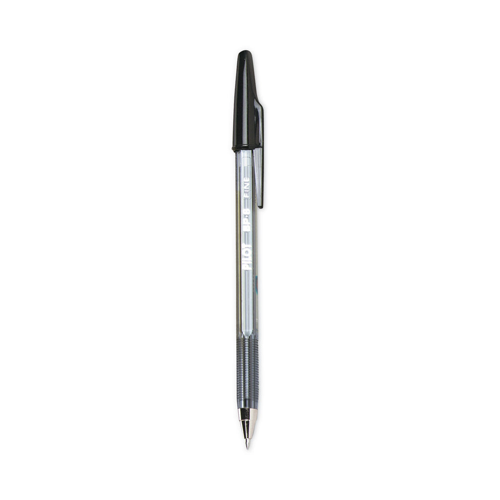 Perfect balance quality and value. Smooth, long-lasting ball point ink. Capped pen features pen clip. Ribbed finger grip provides better control. Tinted transparent barrel lets you keep an eye on your ink supply. Refillable for continued use.