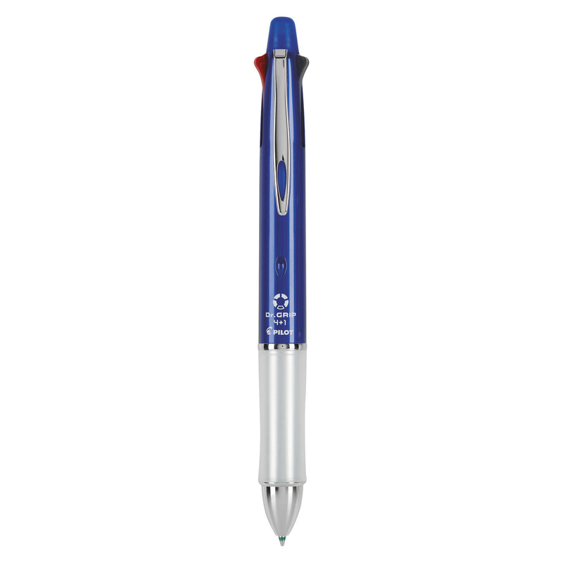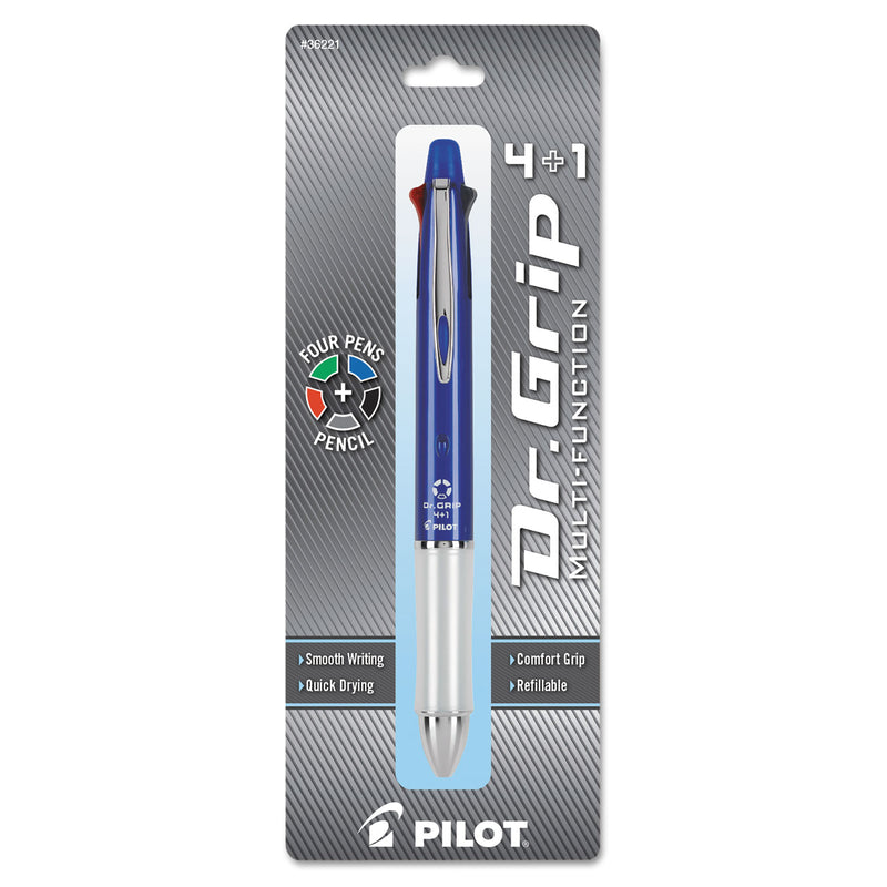 Dr. Grip 4+1 multi-function writing instrument is all you'll ever need! The advanced ink is smooth-writing and fast drying and comes in four different colors. Includes #2 HB lead for strong, break-resistant use. The eraser is concealed under an end cap. Dr. Grip cushioned grip alleviates writing stress and allows you to write on and on!