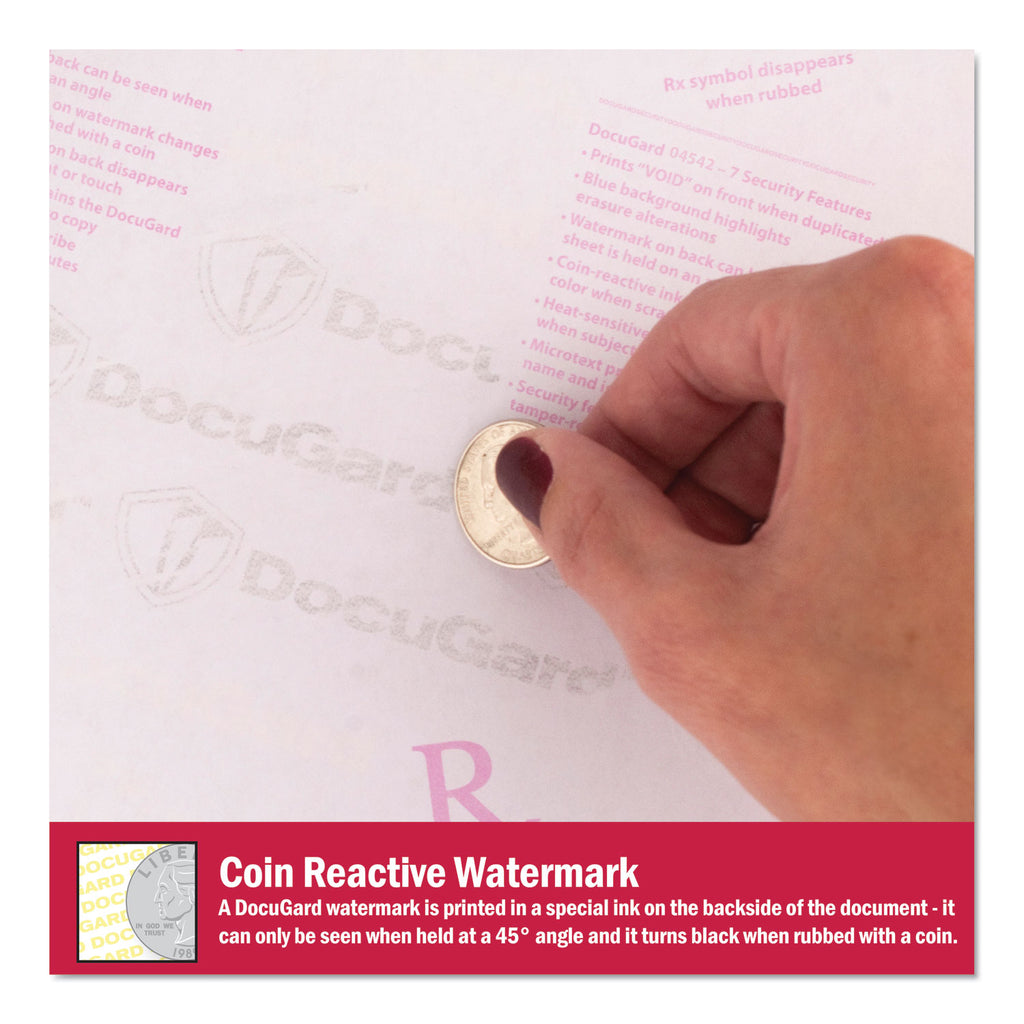 Prevent unauthorized copies and safeguard confidential business, legal, healthcare and personal documents. Designed to meet and exceed federal guidelines for tamper-resistant security paper set by the Centers for Medicare and Medicaid Services. Colored background with erasure protection. Artificial watermark is coin reactive.