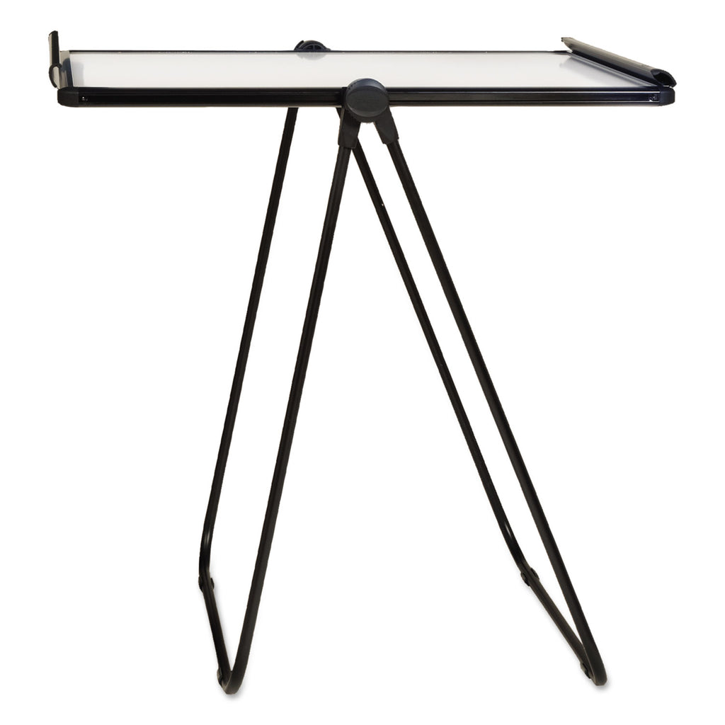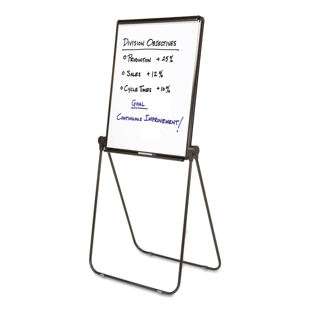 - 70" presentation easel features a double-sided whiteboard surface.