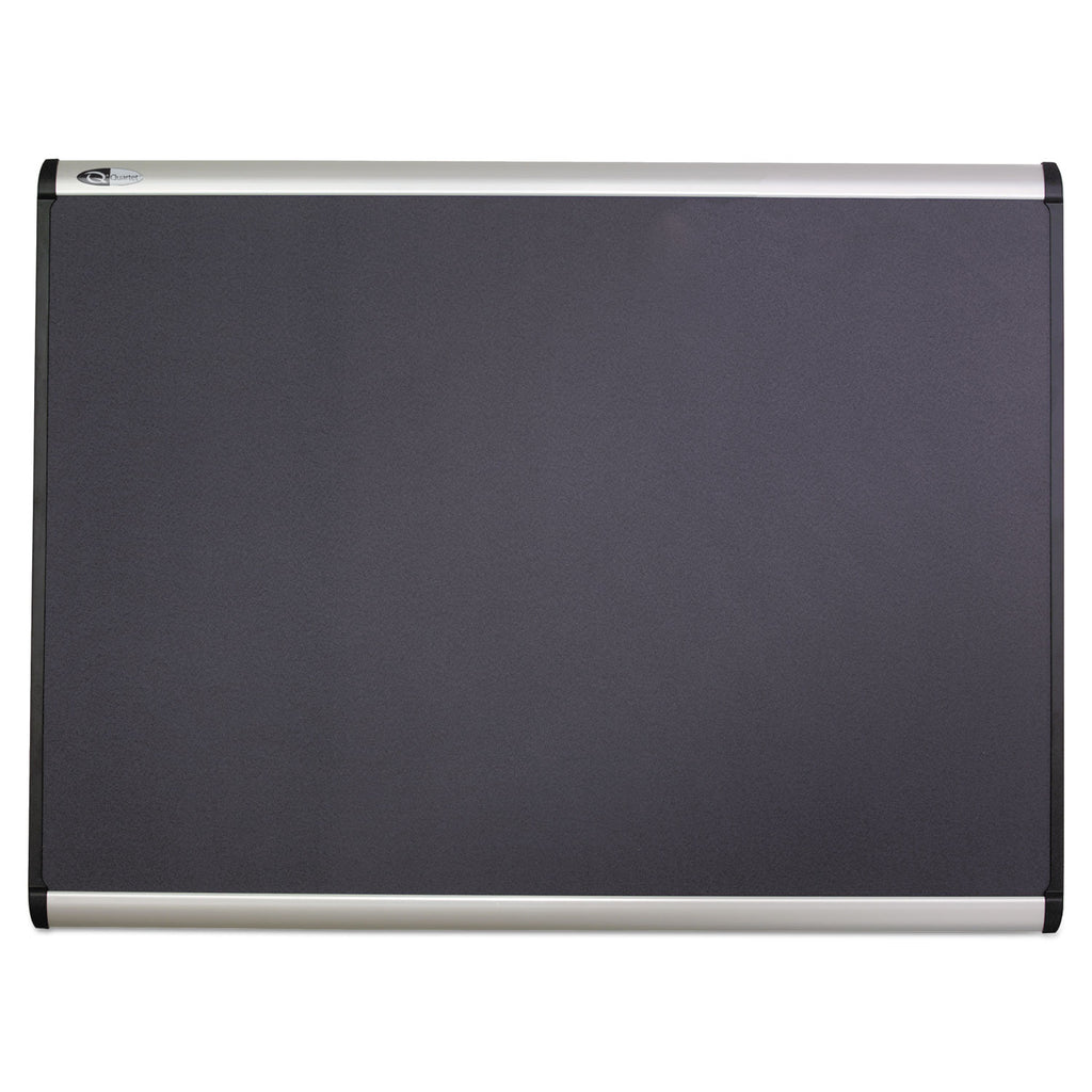 Ultra-durable, densely woven fabric magnetic bulletin board backed by high-density fiberboard allows you to secure documents with push pins or magnets. Delivers superior performance when communication and collaboration is needed in high-profile, heavy-use offices and conference rooms. Self-healing surface eliminates unsightly pin holes and will not fade or crumble like traditional cork boards, even after years of use. High-density backing for maximum pin-holding power, ensuring documents stay securely posted. Fasten photos or important documents without holes using included Quartet® Quick Clips and Magnets. Patented Easy Mount™ hanging system secures board to wall in multiple places, guaranteeing easy and accurate installation. Sleek polished-aluminum frame complements a wide range of interiors.