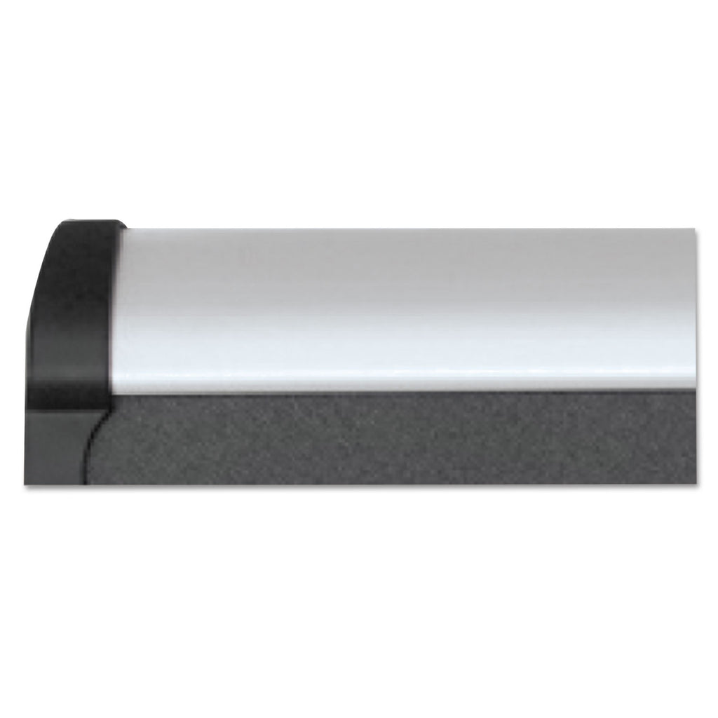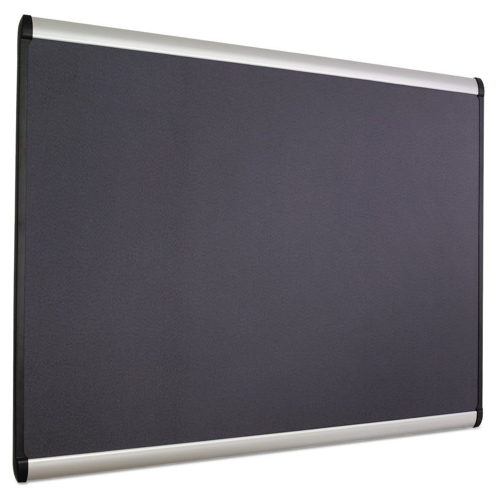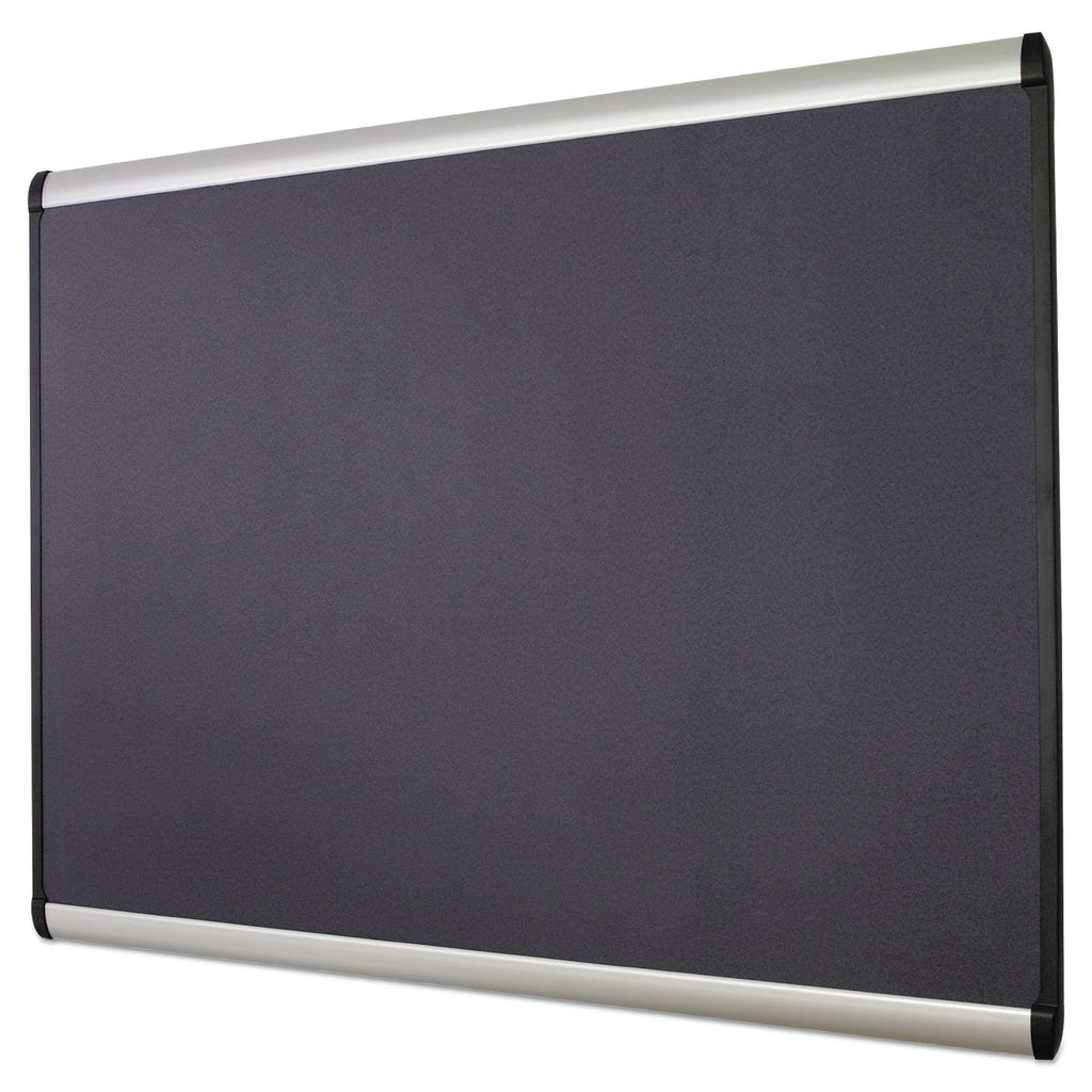 Ultra-durable, densely woven fabric magnetic bulletin board backed by high-density fiberboard allows you to secure documents with push pins or magnets. Delivers superior performance when communication and collaboration is needed in high-profile, heavy-use offices and conference rooms. Self-healing surface eliminates unsightly pin holes and will not fade or crumble like traditional cork boards, even after years of use. High-density backing for maximum pin-holding power, ensuring documents stay securely posted. Fasten photos or important documents without holes using included Quartet® Quick Clips and Magnets. Patented Easy Mount™ hanging system secures board to wall in multiple places, guaranteeing easy and accurate installation. Sleek polished-aluminum frame complements a wide range of interiors.