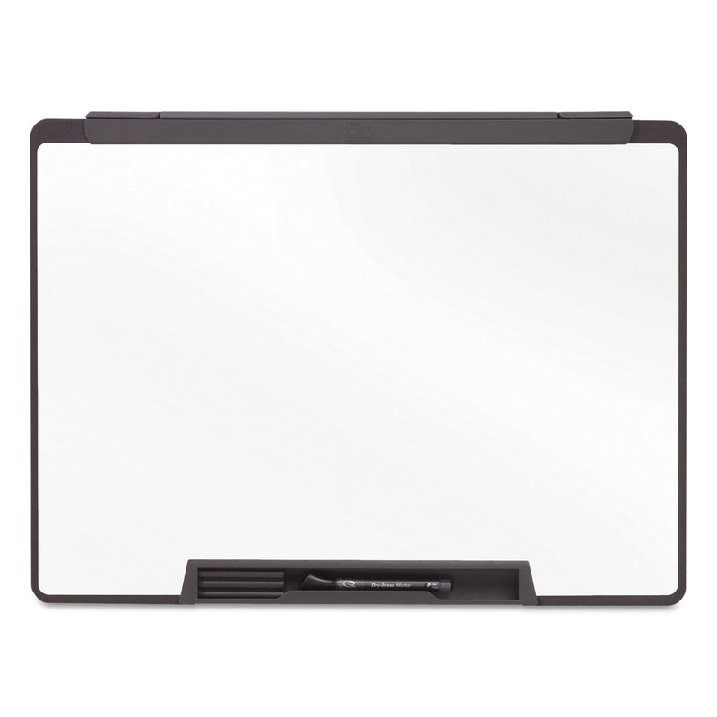 Durable, mobile whiteboard with smooth writing surface, designed for organizing daily tasks and on-the-go presentations in contemporary work environments. Lightweight for easy transport between personal workstation and meeting rooms. Extend surface life with regular cleanings using Quartet® cleaning solutions. Built-in swivel hangers attach to most office surfaces, including cubicle walls. Store accessories in built-in accessory tray. Includes one Quartet® dry-erase marker and one board eraser.
