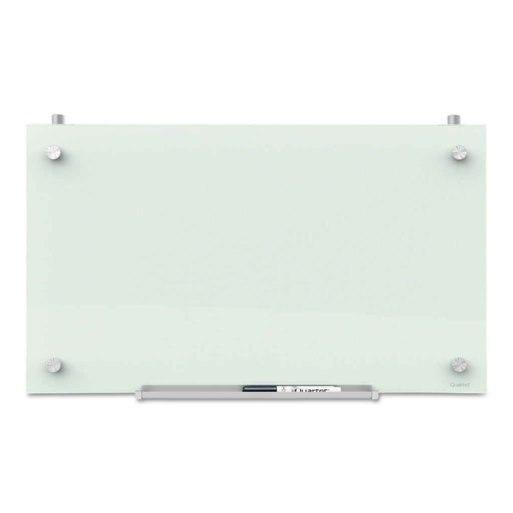 Have your very own message board, with a handy, personal-sized board that fits perfectly in cubicles, even if they have low walls. Tempered white glass surface dry-erase board is durable and will not stain or ghost; provides clean erasability. Sturdy enough to resist scratches and dents. Magnetic quality allows writing and posting of messages with dry-erase markers and rare earth magnets. Frameless board design is sleek and attractive. Two mounting hardware sets are included: adjustable brackets to hang board over cubicle walls and wall mount for traditional hanging. Writing in all colors is easily visible on the white glass board surface. 16:9 aspect ratio.
