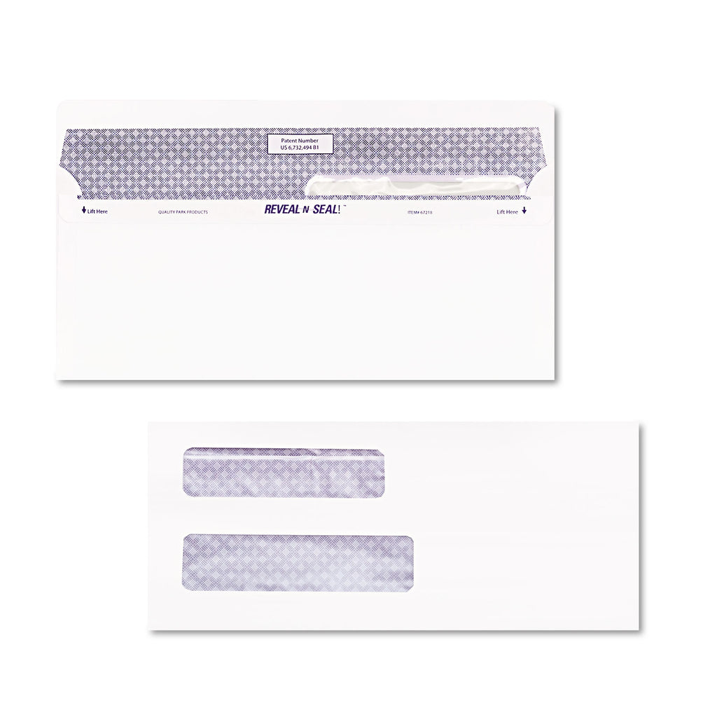 Single window security tinted envelope with Reveal-N-Seal® self seal closure is the ultimate in convenience and security. Self seal closure alleviates the need to moisten flaps and to throw away pull-off strips. Simply fold bottom flap up and press for a secure seal! Window conveniently accommodates the printed address eliminating hand addressing. Perforated lines along flap show evidence if tampering is attempted. The innovative design preserves the adhesive and lengthens shelf life until use. Send out your business correspondence with assurance of quality and security. Count on Quality Park to offer premium products for all your business needs!
