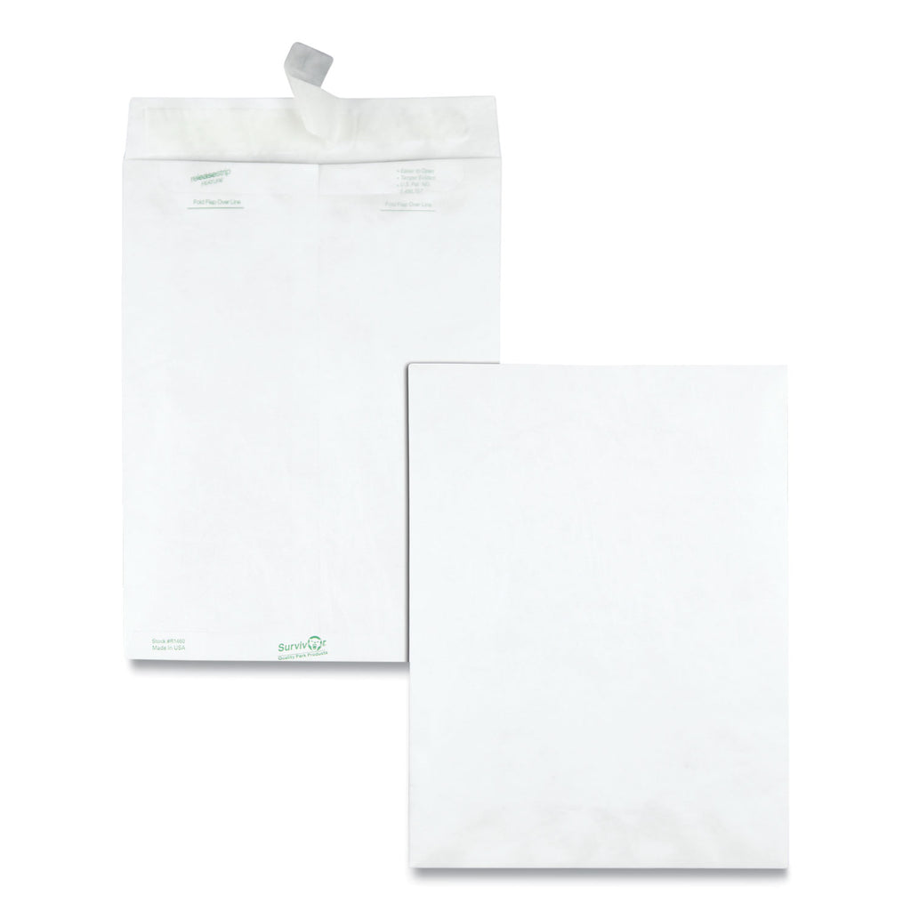 Quality Park® Survivor® Catalog Mailers are made with durable 14-lb DuPont™ Tyvek®, which is strong enough to withstand the most grueling conditions. The material is puncture, tear and moisture resistant—virtually indestructible. Yet, it is still lightweight which can provide a savings on shipping costs. These white mailing envelopes feature an easy Flap-Stik® closure which requires no moisture for a secure seal and a release strip for quick, easy opening. Whether your sending smaller items or re-selling on an online marketplace, Survivor Catalog Mailers are an efficient, cost effective way to make sure your items get there intact. Tyvek® is a trademark of DuPont used under license by LSC Communications US, LLC d/b/a TOPS Products.