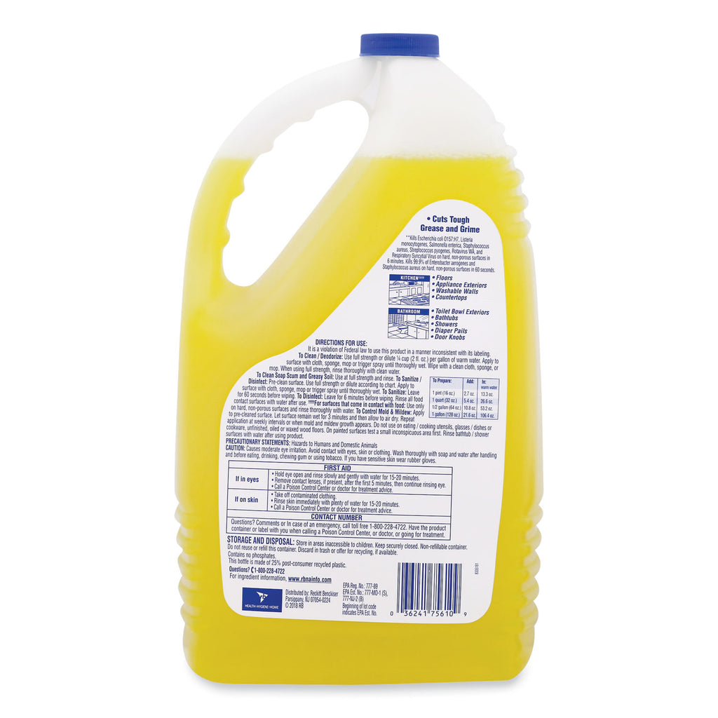 Approved to kill germs and odor-causing bacteria even when diluted. Kills 99.9% of viruses and bacteria on hard, non-porous surfaces when used as directed. Cuts through tough grease and grime. For use on floors, countertops, washable walls, door knobs, showers, bathtubs, diaper pails, toilet bowl exteriors and appliance exteriors.