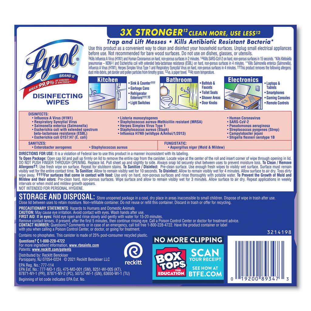 Boost customer confidence with the recognizable canister of Lysol® Disinfecting Wipes that’s ideal for high-visibility locations. Pre-moistened disinfecting wipes kill 99.9% of viruses and bacteria, including the virus that causes COVID-19 when used as directed on hard, non-porous surfaces. Hospital-type disinfection works on a variety of surfaces, including electronics. Quickly clean and disinfect high-touch germ hot spots to help protect your customers and staff. Clean up and keep moving with packaging that’s easy to open, dispense, and store.