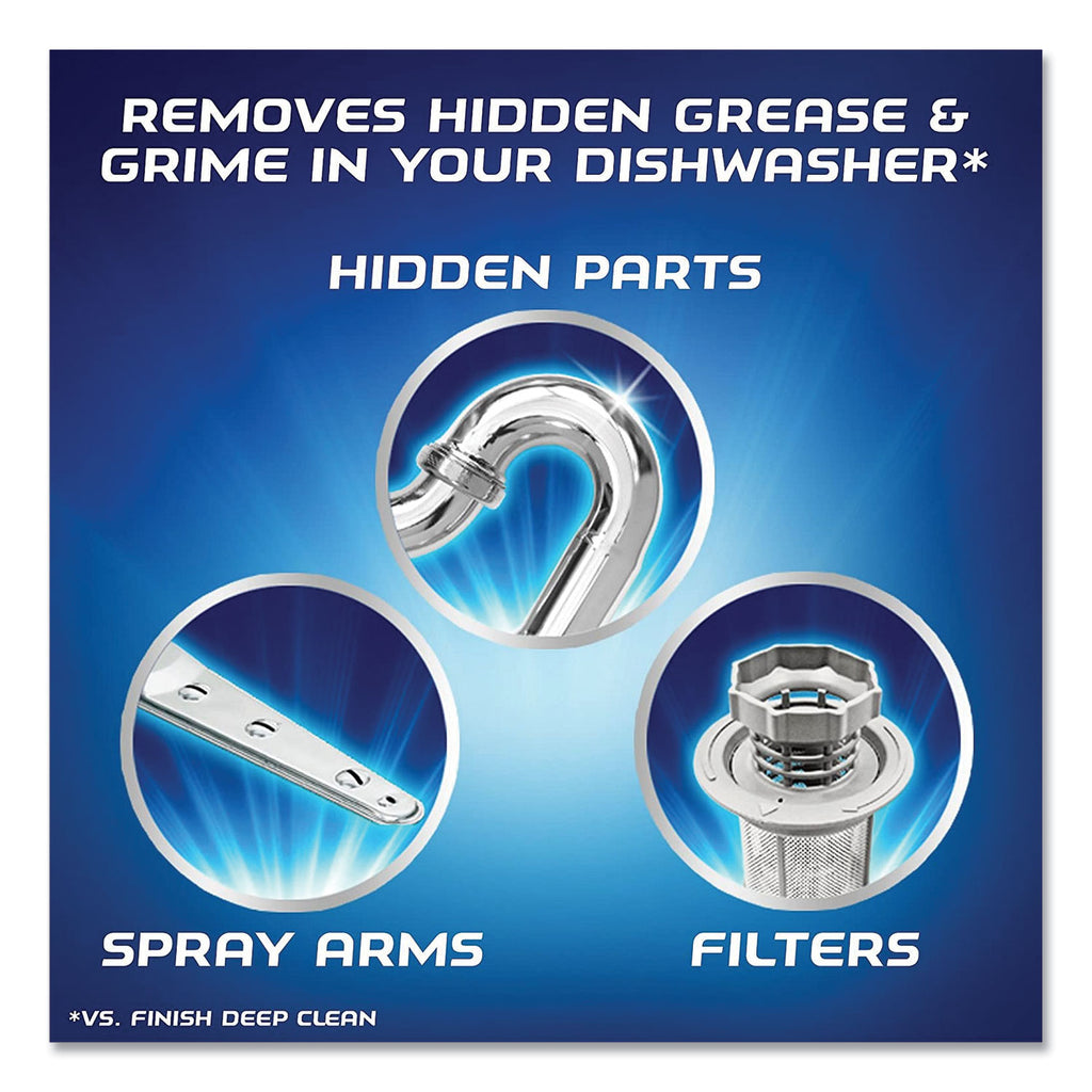 - Cleans hidden grease and grime from your dishwasher while you clean your dishes.