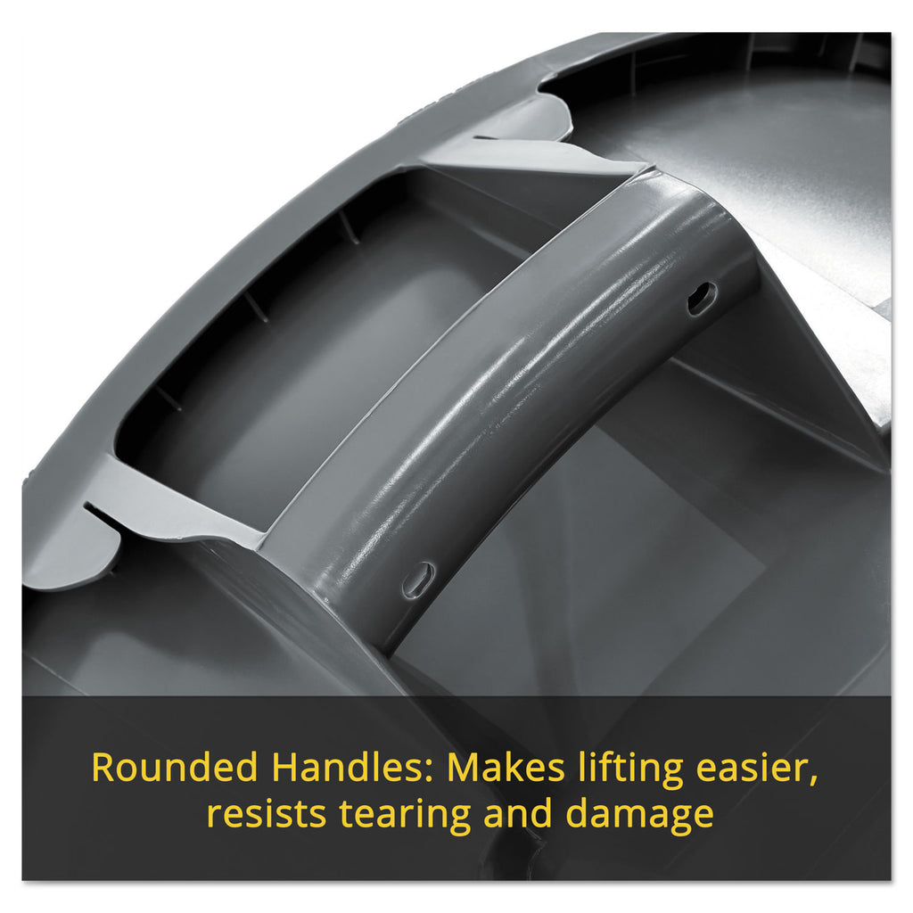 - Rounded handles make lifting and moving easier, and are reinforced to resist tearing or damage from even the heaviest loads.