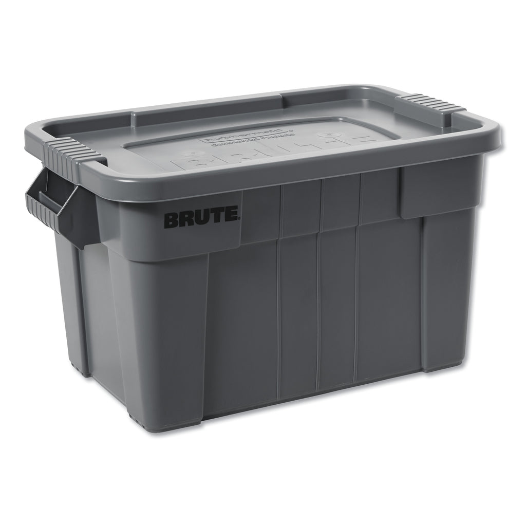 The Rubbermaid® Commercial BRUTE food storage tote with lid is ideal for use in food handling and processing. User-friendly grip handles decrease potential for back injury and finger strain holes in handle allow water to drain, reducing risk of bacteria build-up.