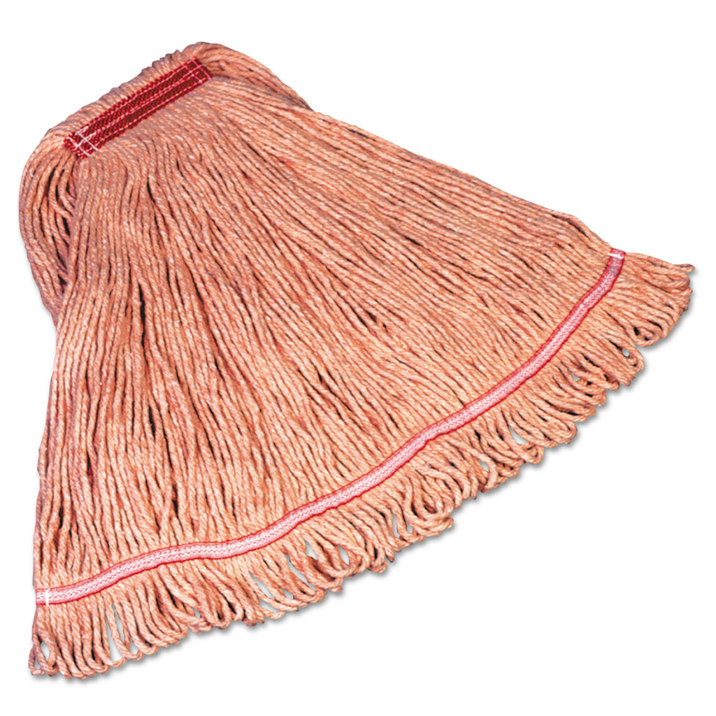 The Rubbermaid Commercial Super Stitch Blend Mop has a blend of 4-ply cotton and synthetic fibers for higher absorbency and more launderings than cotton mops, and has looped ends and a yarn tailband to reduce tangling and fraying for improved performance. The synthetic mesh headband resists moisture retention so the mop head can dry between uses. Green cleaning equipment is recognized in the industry as color-coded for use in food service areas as part of a zone isolation system to help minimize cross-contamination. These mop heads are suitable for use in commercial and industrial applications.