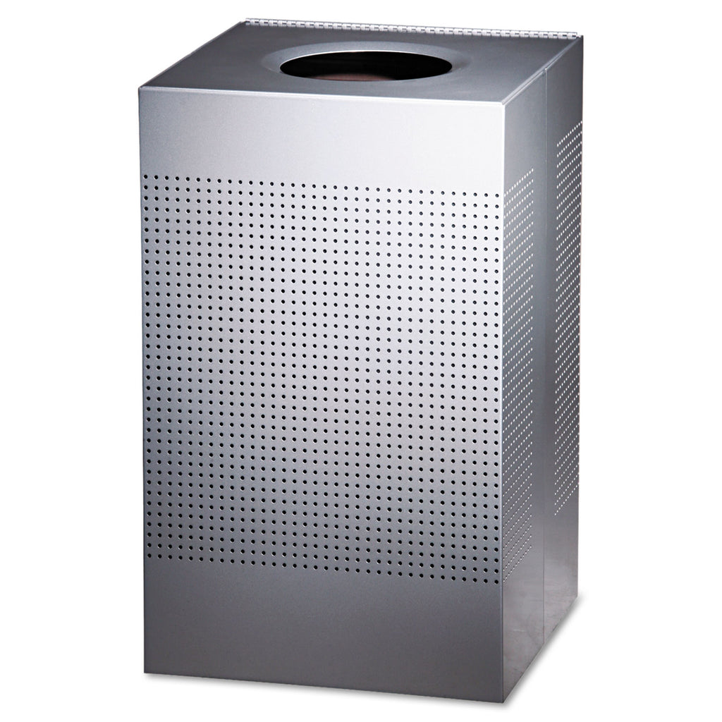 Offers functional litter control in an elegant design. The garbage can has an open top with a vinyl trimmed disposal opening. The trash can is made of fire-safe steel. Its wall-hugging design is ideal for areas where looks are important and space is limited. The lift-off trash can body makes it easier to empty and has a rigid plastic liner that will not leak.