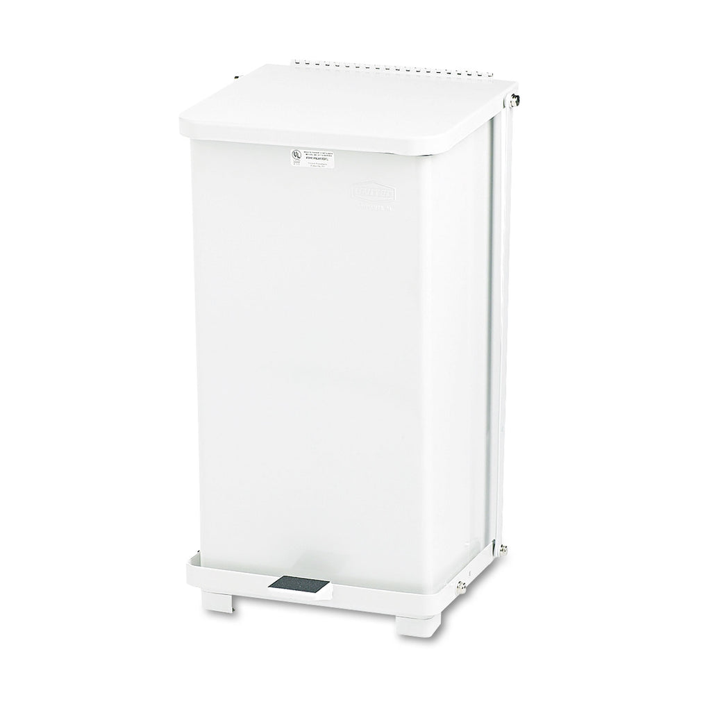 Rubbermaid Commercial Defenders Step-On Trash Can with Plastic Liner complies with OSHA standards on blood borne pathogens for the safe containment of infectious waste. These step-on trash cans feature a foot pedal for hands-free operation. Trash can is finished in powder-coat and is State Fire Marshal listed.
