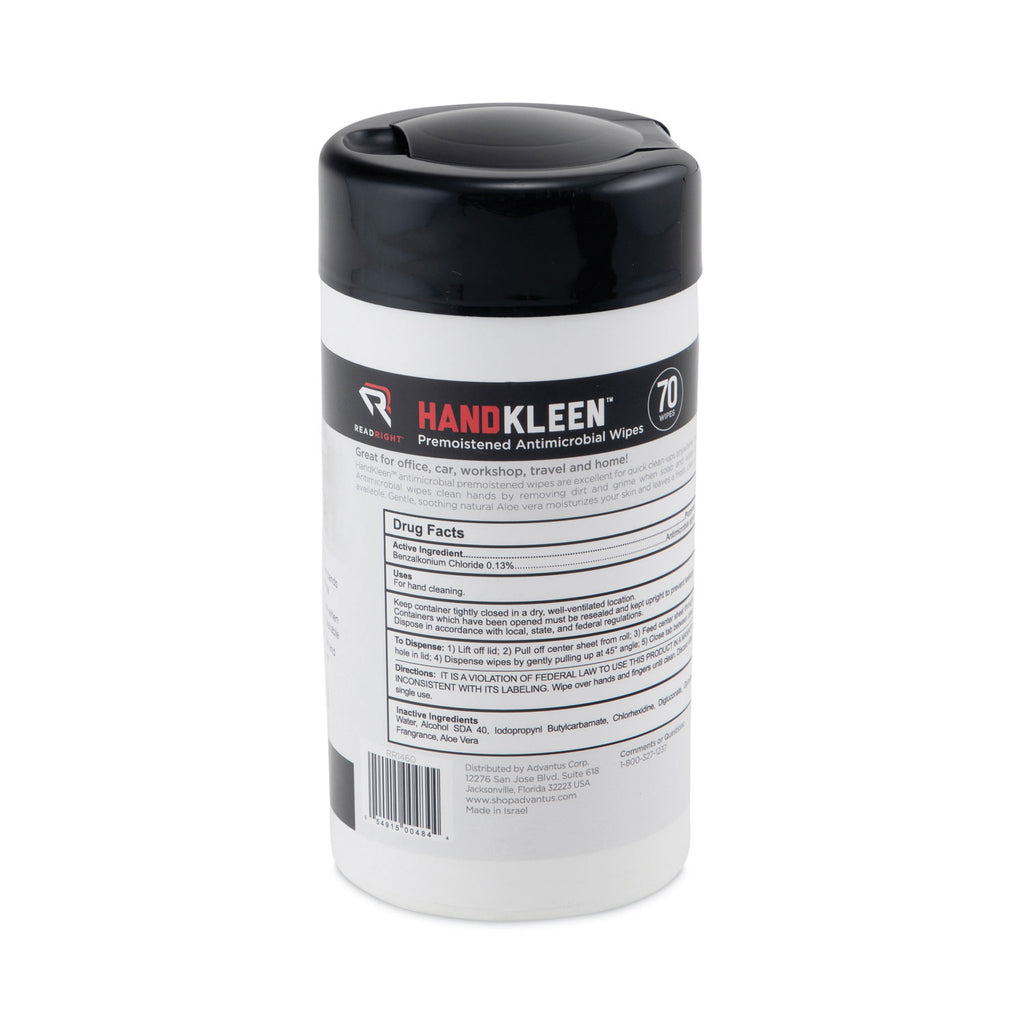 The ideal hand-cleaning wipe, the Read Right HandKleen Pre-moistened Cleaning Wipes are perfect for sanitizing hands in situations when soap and water are not available. Kills germs from hands and moisturizes skin with an infusion of aloe vera. Perfect for cleaning hands when at work, at home, in the classroom, when traveling on car trips or airplanes, or just about anywhere.