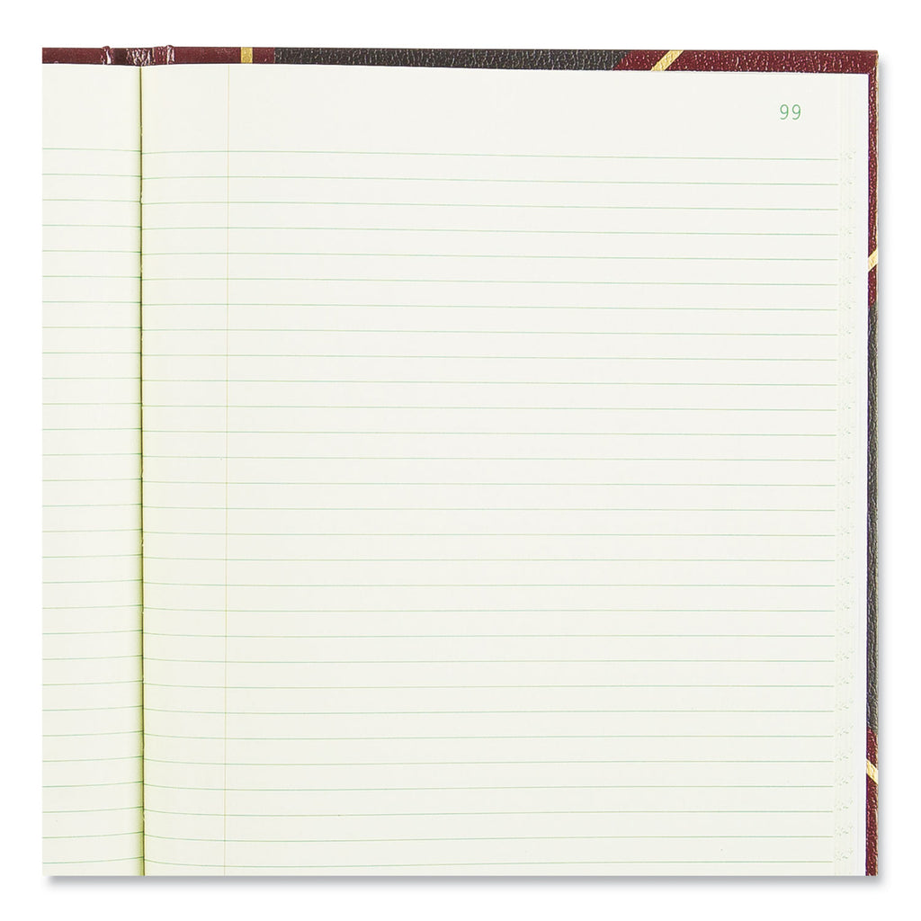 Black leather-like cover accented with burgundy spine and corners creates a classic look. Sewn construction for strength and durability. Especially permanent archival-safe, acid-free paper is ideal for long-term preservation. Eye-Ease® green paper with brown and green rulings and numbered pages.