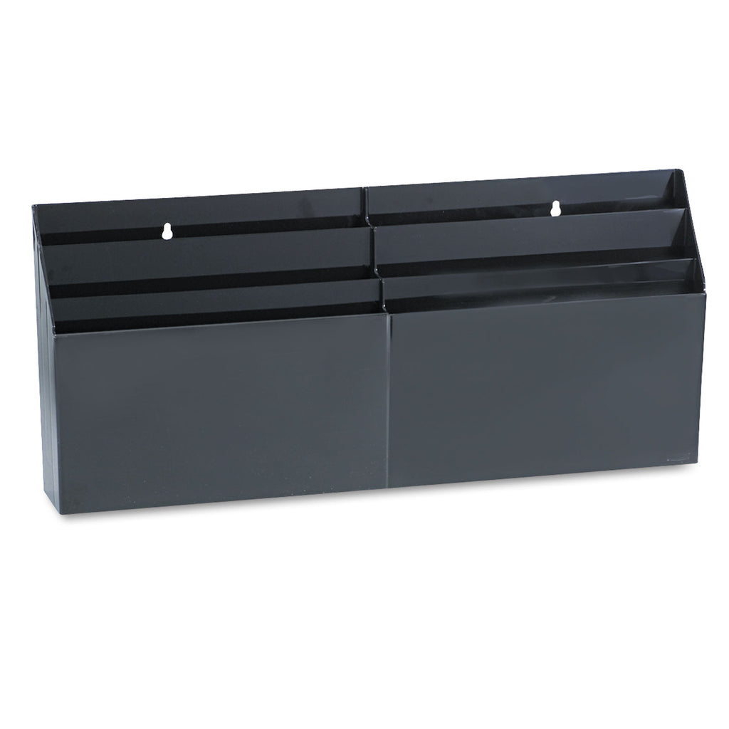 Three letter size, stepped pockets on each side. Extra-thick plastic walls for maximum durability. Use on desk in flat or upright position to sort stationery, file folders, documents. Mount on wall for use as wall pockets to keep items within easy reach and clear up desk space.