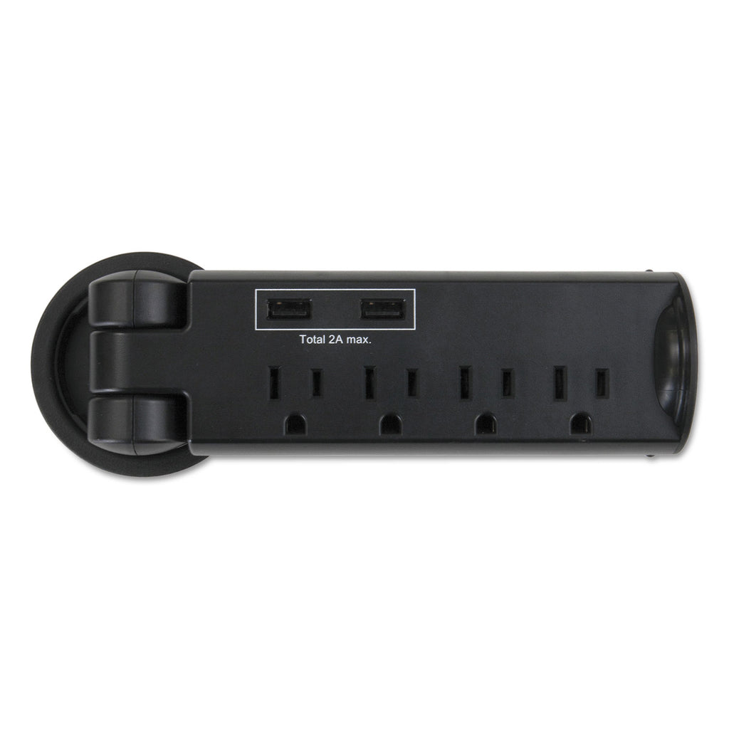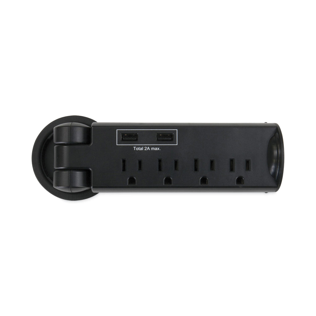 The Pull-up Power Module gives you quick, easy access to power right at your workstation. Four extra outlets plus two USB ports keep you and all your devices plugged in and powered up. Includes built-in surge protector and 8 ft. power cord. Fits in cable grommet cutout.