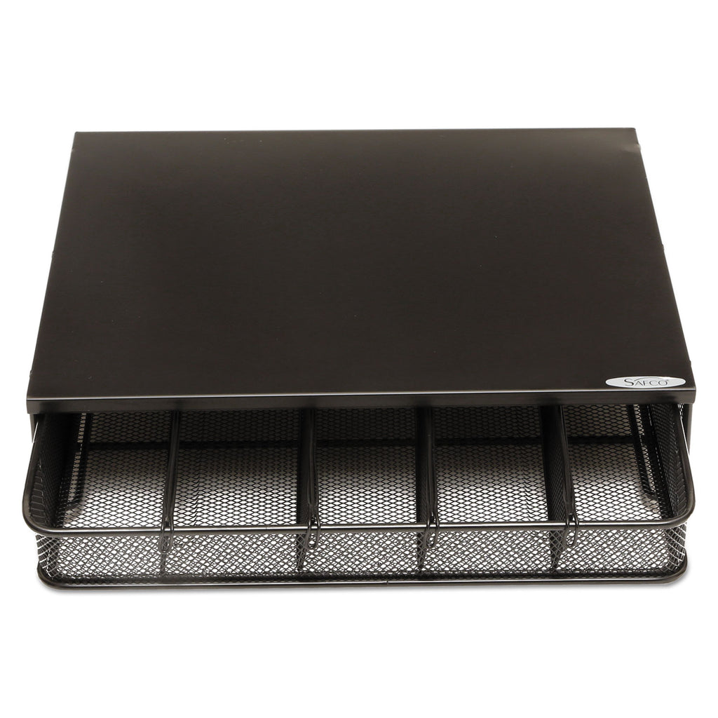 Create breakroom brilliance with the one drawer steel mesh organizer. Removable dividers easily help you customize and organize supplies and coffee condiments. Keep your creamer separate from your stir sticks, or your single-serve coffee pods from getting mixed up with your napkins. Flat top allows organizers or supplies to be stacked.