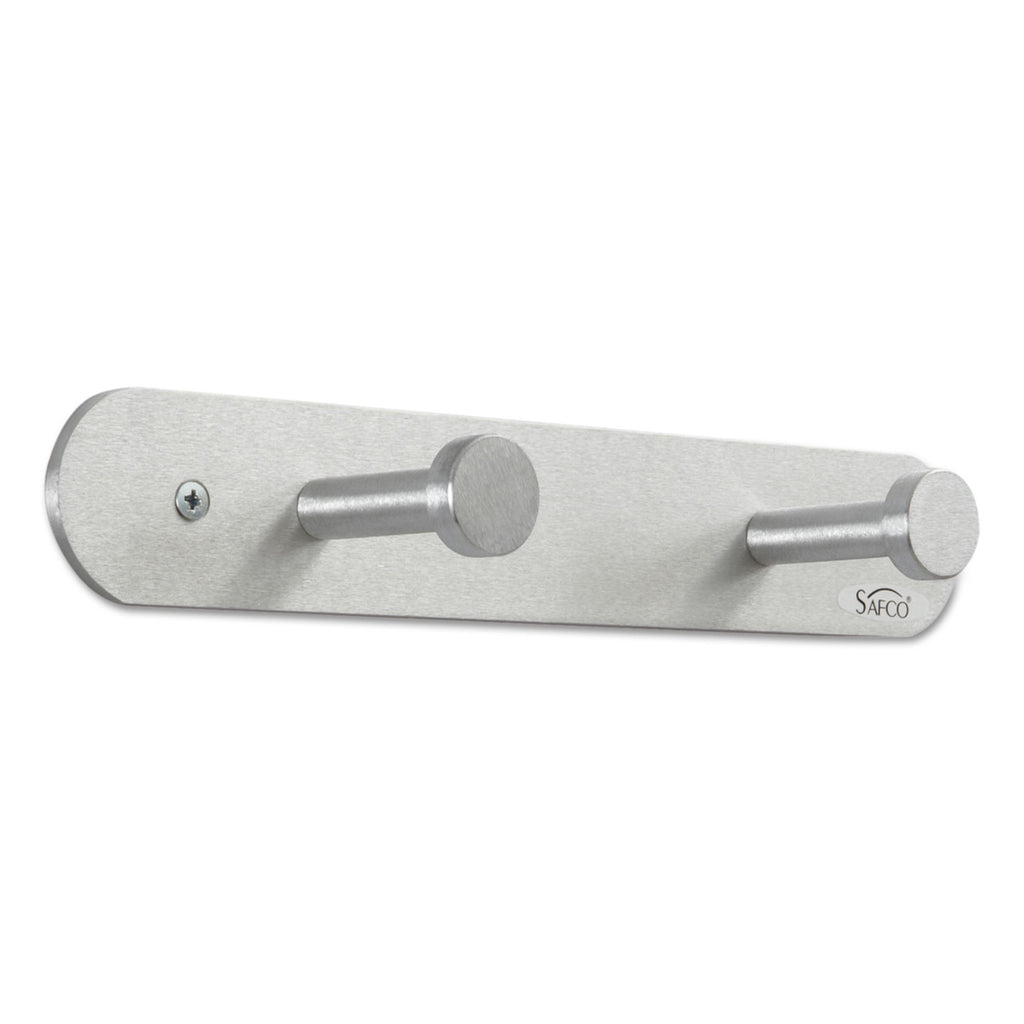 Satin aluminum hooks on matching back plate. Oversized circular hooks to help protect garments. Mounting hardware included.