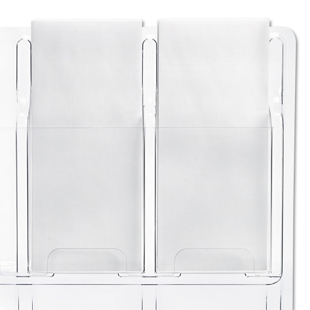 Unobtrusive, break-resistant, clear plastic displays blend into any office environment. Each pocket holds up to 1 3/4" of material. New front panel design features easy-to-clean opening. One-piece units require no assembly. Wall mounting hardware included.