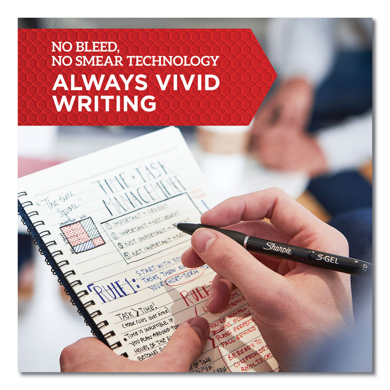 Sharpie is now available in a new gel pen! Introducing Sharpie S·Gel, a high performance gel pen that delivers a bold vivid impact with no smear, no bleed gel technology for an unparalleled writing experience. Features a professional modern design, comfortable contoured rubber grip and high performance gel ink for always vivid writing.
