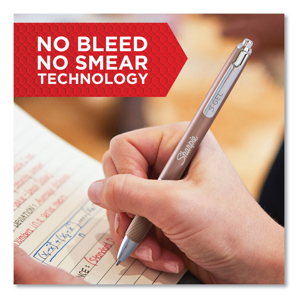 The power of Sharpie is now in a metal gel pen. This Sharpie S-Gel is a high performance gel pen with a sleek metal barrel and professional look that's sure to stand out. With no-smear, no-bleed technology and bold, unrivaled ink, this Sharpie pen delivers always-vivid writing. The contoured rubber grip makes for a comfortable writing experience during any writing task—perfect for homes, schools, or offices.